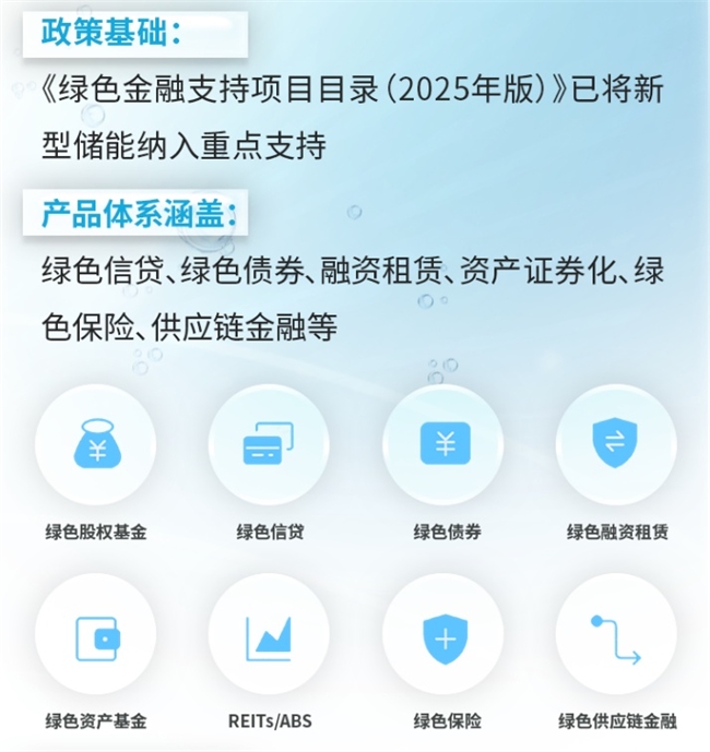 近年来,绿色金融政策为储能打开了资金通道。《绿色金融支持项目目录(2025年版)》明确将新型储能产品制造、贸易及智能电网建设纳入支持范围,统一了绿色信贷、绿色债券等产品的认定标准。央行碳减排支持工具持续扩容,覆盖