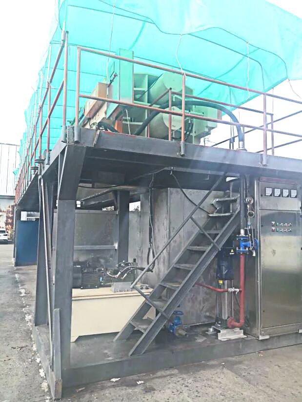 这个方案挺好的,但只适合日产量1000m3泥饼以上的大型脱水站,因为钢构的设计,导致前期安装工程就需要将近一个月的时间,竣工后还要进行拆卸,费时费力造价高。