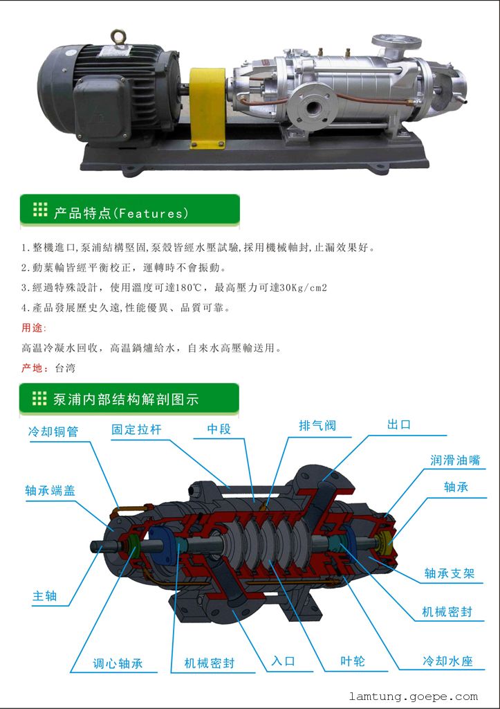 1.整機進口,泵浦結構堅固,泵殼皆經水壓試驗,採用機械軸封,止漏效果好。