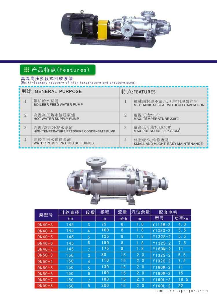 用途: 冷凝水回收泵 ,高温锅炉给水,高楼自来水输送